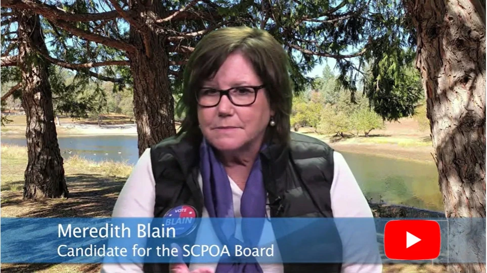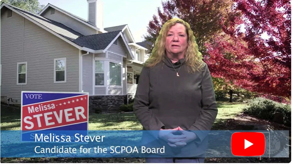I believe my experience and desire to serve would make me a valuable Board member and hope you do as well. I am always happy to discuss the concerns of SCPOA members and would appreciate hearing personally from you. Please give me a call or contact me through email, anytime. Thank you for your thoughtful consideration.