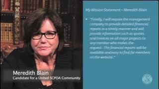 ![]() | Meredith Blain’s Interview Candidate Q&A for the 2022/23 SCPOA Election 14:14 | https://youtu.be/0eeJhFTJQC8 |