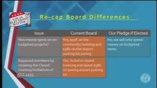 ![]() | Karen Paul’s Campaign Message Karen describes how her priorities, philosophy of serving the membership on the board, budgeting and how spending constraints will benefit the Swansboro community. Special attention is paid to lack of attention to members on the community building issue and lack of planning on it. 3:55 | https://youtu.be/RO1-NEA1uuk |